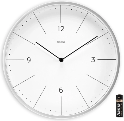 Elegante wandklok met een diameter van 30 cm in grijs, met een witte wijzerplaat en goed leesbare indexen. Dankzij het kwartsuurwerk en de analoge tijdsaanduiding biedt hij een stille en precieze werking. Het minimalistische design met de cijfers 3, 6, 9 en 12 past perfect in moderne interieurs.