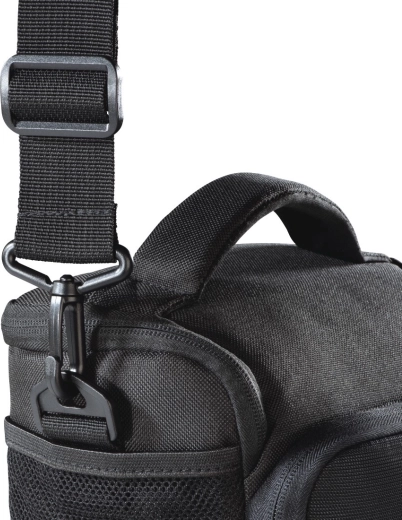 Gepolsterde handgreep, afneembare en verstelbare schouderriem en een lus voor aan de riem voor maximaal draagcomfort.