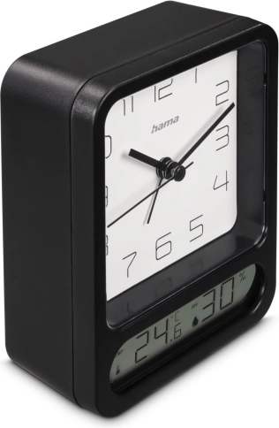 Dankzij de compacte afmetingen en batterijvoeding plaats je de wekker gemakkelijk op het nachtkastje of bureau zonder kabels. De minimalistische zwarte omlijsting past in zowel moderne als klassieke interieurs en de overzichtelijke bediening aan de achterkant maakt het instellen van tijd en alarm eenvoudig.