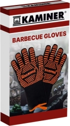 Deze hittebestendige KAMINER-handschoenen zijn ontworpen voor het hanteren van hete pannen, roosters en bakplaten. De stevige, meerlaagse constructie met een aandeel pre-geoxideerde vezel en antislip-siliconen zorgt voor een zekere grip en kortdurende bescherming tegen hoge temperaturen bij koken en grillen.