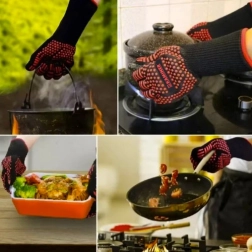 Antislip siliconen stippen en strepen op handpalmen en vingers zorgen voor een stevige greep op pannen en gerei, verminderen het risico op wegglijden en verhogen de precisie bij het dragen van hete voorwerpen.