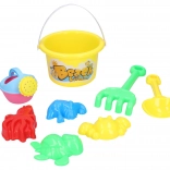 - 8 onderdelen in de set: emmer met afbeelding, schep, gieter, harkje en 4 vormpjes