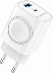 Zoek je een universele en snelle oplader voor telefoon, oordopjes en smartwatch? De Gembird 20 W combineert USB‑C met Power Delivery en USB‑A met Quick Charge 3.0, zodat hij de meeste moderne smartphones en accessoires betrouwbaar en efficiënt oplaadt. De magnetische module maakt het gemakkelijk om Apple Watch kabelvrij op te laden.