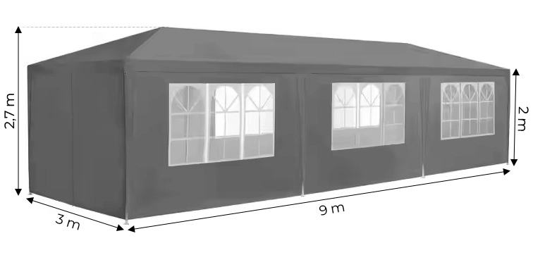 De complete tuinpartytent van het merk MultiGarden is de ideale oplossing voor tuinen, volkstuinen en het organiseren van evenementen. Deze ruime paviljoen met afmetingen 3x9x2,7 m biedt comfortabele ruimte voor buitenevenementen zoals banketten, bruiloften of grote familiebijeenkomsten. Bestand tegen zon en regen, de stevige constructie biedt betrouwbare bescherming bij elk weertype.
