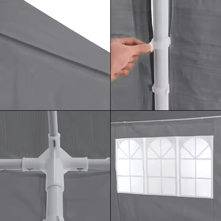 De tent onderscheidt zich door sterke, poedergecoate metalen buizen met een diameter van 32/25/25 mm, die zorgen voor stabiliteit en corrosiebestendigheid. De robuuste constructie staat garant voor een lange levensduur, ook bij frequent gebruik. Elke poot van de tent is met haringen tegen wind gezekerd, wat bijdraagt aan de stabiliteit. Het dak en de wanden zijn gemaakt van duurzaam, waterdicht polyethyleen met een dichtheid van 100 g/m².