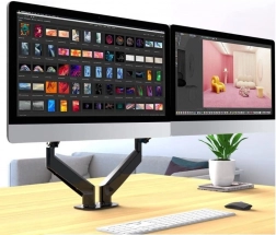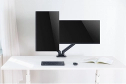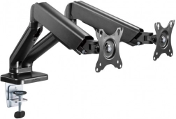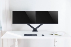 De standaard is ideaal voor het optimaliseren van uw werkruimte. Hij maakt eenvoudige instelling van de positie van de monitoren met één aanraking mogelijk, waardoor optimaal comfort en ergonomie worden gewaarborgd. Bevestiging aan het bureaublad met een klem zorgt voor uitstekende stabiliteit en veiligheid.