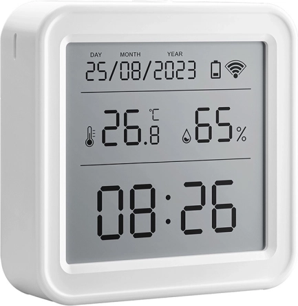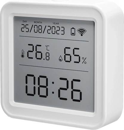 De Gosund ST17 is een stijlvolle sensor die de temperatuur en luchtvochtigheid binnenshuis nauwkeurig bewaakt en dankzij het LCD‑display alles duidelijk weergeeft. Via Zigbee 3.0 communiceert hij betrouwbaar met je smart home en in de Gosund/Tuya‑apps krijg je datageschiedenis, grafieken en meldingen.