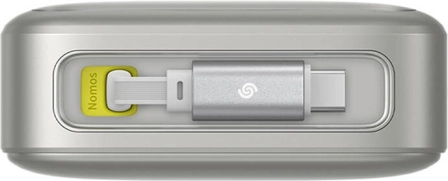 De geïntegreerde, inschuifbare USB‑C‑kabel bespaart ruimte in je tas en tijd. Geen kabels zoeken – gewoon uittrekken en opladen, desnoods tegelijk met de tweede USB‑C‑poort.