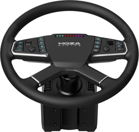Veertien RGB-knoppen met pictogrammen voor trucksimulatie, 10 LED’s voor toerental en een paar aluminium draaiknoppen samen met ultradunne joysticks bieden directe toegang tot functies. In de software MOZA Pit House stel je verlichting, mapping en feedback precies in naar je voorkeur.