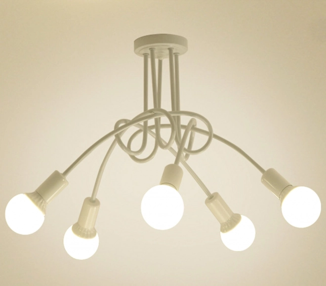 Deze moderne lamp biedt vijf afzonderlijke E27-fittingen, waardoor je eenvoudig de lichtintensiteit en sfeer kunt kiezen. Het minimalistische metalen ontwerp in wit past perfect in hedendaagse interieurs en komt prachtig tot zijn recht met zowel klassieke als design E27-lampen.