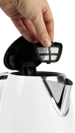 Voor een lange levensduur is hij uitgerust met een roestvrijstalen antikalkfilter dat kalkaanslag opvangt. Het filter is gemakkelijk uit te nemen, te reinigen en weer te plaatsen; in de verpakking vind je bovendien een reservefilter voor nog langduriger zorgeloos gebruik. De draaibare 360° basis en snoerloos serveren zorgen voor comfortabele bediening.