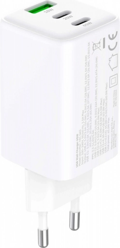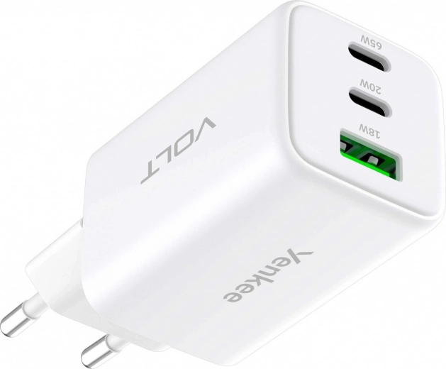 Netvoedingslader VOLT 65 W GaN, 3× USB (2× USB‑C + 1× USB‑A) met Power Delivery 3.0 en QC 4.0