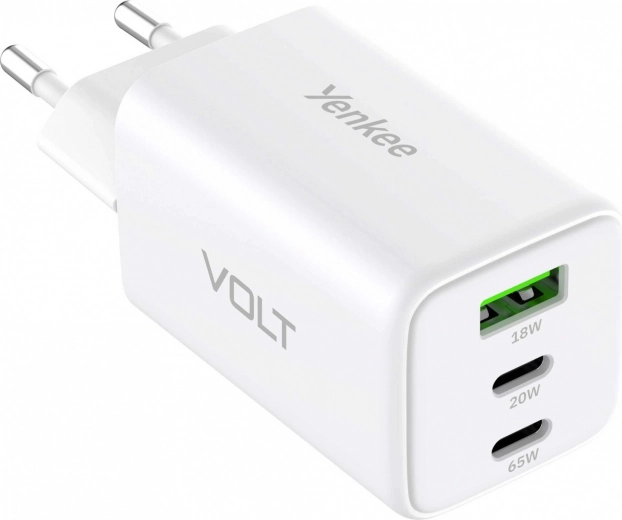 - 3 uitgangen: 2× USB‑C (20 W en 65 W) + 1× USB‑A (18 W)