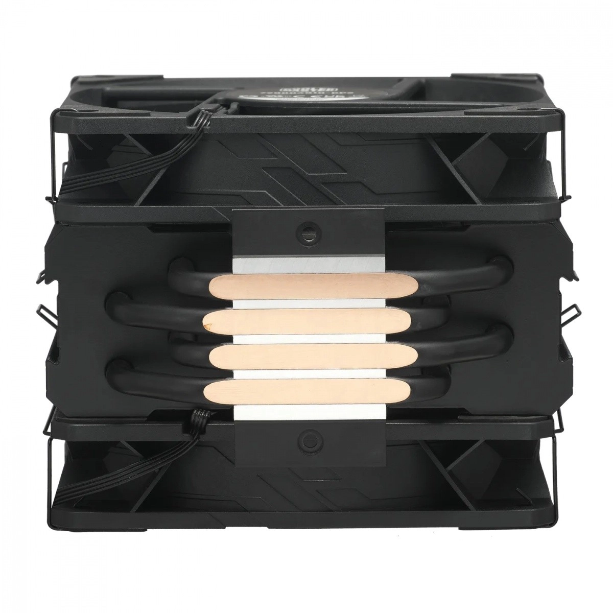 De Cooler Master Hyper 212 Black X Duo bouwt voort op het beproefde Hyper 212-platform en tilt het naar een hoger niveau. Het duo SickleFlow 120 Edge-ventilatoren biedt een uitgebalanceerde combinatie van druk en luchtstroom voor stabiele temperaturen, zelfs bij langdurige belasting. Het minimalistische zwarte ontwerp past perfect in moderne behuizingen en verlichte builds.