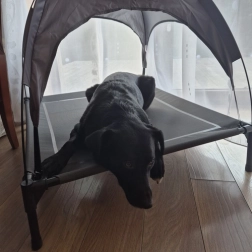Het hondenbed PURLOV is *ontworpen voor maximaal comfort* van alle hondenrassen. Dankzij het verhoogde ontwerp en het ademende gaas zorgt het voor *optimale luchtcirculatie* en aangename koelte, zelfs als het buiten warm is. De montage is *snel en eenvoudig*, het duurt slechts 4 minuten zonder gereedschap.