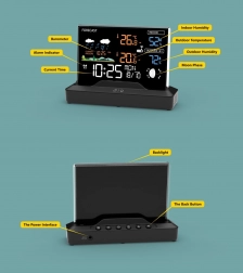 Dankzij de draadloze sensor met een bereik tot 30 m ontvang je actuele temperatuur- en vochtigheidsgegevens van binnen en buiten. De barometer en de ingebouwde weersvoorspelling voor 12–24 uur maken dagplanning eenvoudiger. Verder aanwezig: wekker met snooze, kalender en weergave van de maanfasen.
