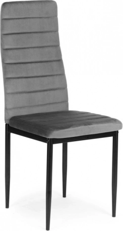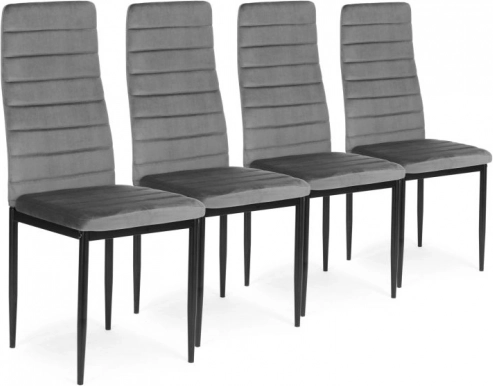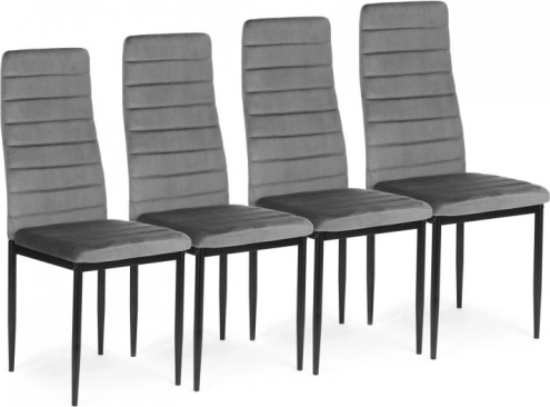 De set van vier gestoffeerde stoelen vormt een elegant en modern element in ieder interieur. Deze stoelen bieden uitstekend zitcomfort dankzij de gevormde rugleuning en de hoogwaardige schuimvulling. Ze zijn uitgerust met rechte, zwarte metalen poten voor perfecte stabiliteit en een moderne look.