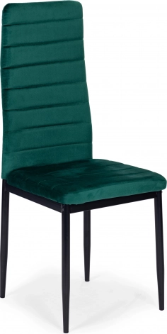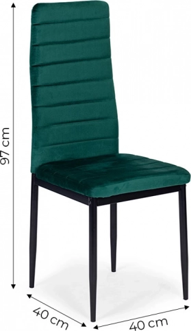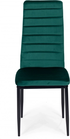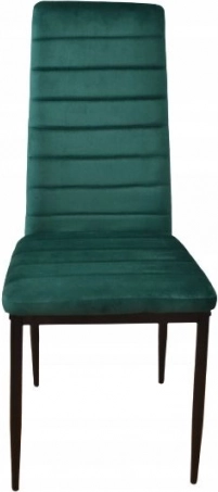 Deze set van vier eetkamerstoelen is een ideale keuze voor je eetkamer of woonkamer. Ze vallen op door hun moderne design en aangenaam aanvoelende groene fluwelen bekleding. Dankzij de hoge, gevormde rugleuning en schuimvulling van hoge kwaliteit bieden de stoelen maximaal comfort. De zwarte metalen poten geven de stoelen een elegante uitstraling en garanderen tegelijkertijd stabiliteit.