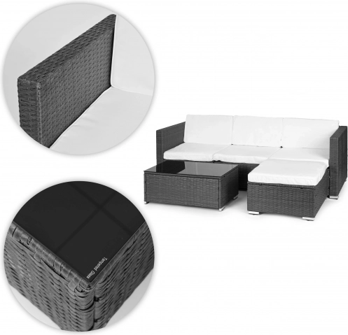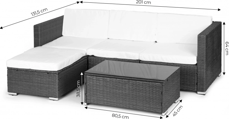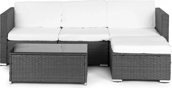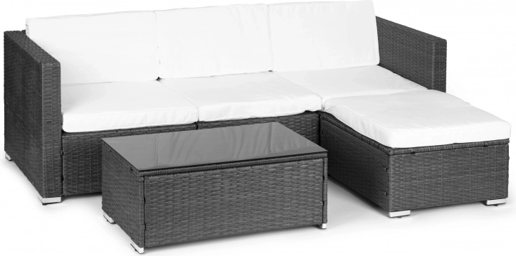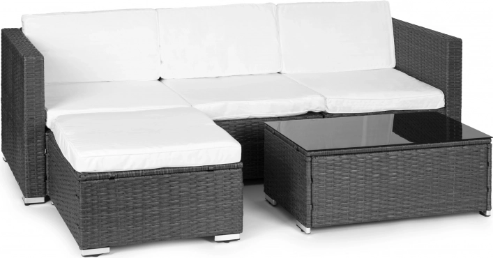 Verander je terras of tuin in een ontspannen zithoek. Deze MULTIGARDEN-set combineert een moderne technorattan-look met het comfort van zachte kussens en een praktisch tafeltje met zwart glazen blad. Dankzij vier afzonderlijke modules pas je de opstelling eenvoudig aan op de ruimte en de gelegenheid.