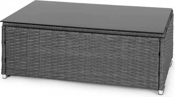 Technorattan is kleurecht, niet-absorberend en bestendig tegen regen en zon, zodat je het meubel het hele seizoen buiten kunt laten staan. Gehard glas van 5 mm dik is bestand tegen beschadigingen en veilig voor dagelijks gebruik. Het onderhoud is eenvoudig – afnemen met een vochtige doek is voldoende.
