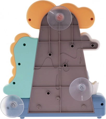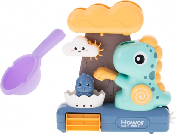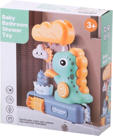 Het kinderspeeltje met dinosaurussen en waterwiel is een geweldige manier om de badtijd van kleine kinderen op te fleuren. Het spel bestaat uit het gieten van water in een bovenste container in de vorm van een grote wolk, vanwaar het water vanzelf door alle delen van het speeltje stroomt, wat visueel plezier voor kinderen biedt.