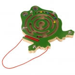 Dit houten magnetische doolhof in de vorm van een kikker houdt kinderen thuis en onderweg langdurig bezig. Met de meegeleverde magnetische pen aan een koordje leiden ze de gekleurde balletjes door de kronkelige banen naar de eindbestemming. De transparante afdekking zorgt ervoor dat de balletjes altijd binnen het speelgoed blijven.