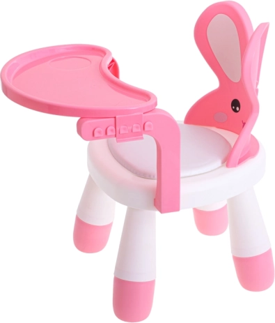 Deze multifunctionele kinderstoel met konijnenmotief maakt van iedere maaltijd en elk spelmoment een fijn ritueel. Het afneembare roze tafeltje is perfect om te voeren, tekenen of met blokken te bouwen, terwijl de ergonomische rugleuning met oortjes een correcte en comfortabele zithouding ondersteunt.