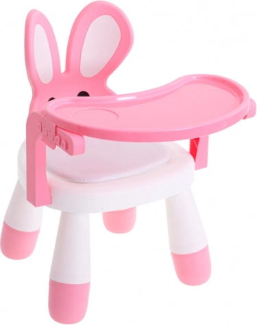 Schattige kinderstoel in de vorm van een konijntje met afneembaar tafeltje, ideaal voor de eerste hapjes en creatief spelen. Biedt een ergonomische rugleuning met “oortjes” voor de juiste lichaamshouding, gemakkelijk schoonmaken en tweehoogte-instelling van de zitting. De lichte en stabiele constructie van duurzaam plastic zorgt elke dag voor veilig zitten en comfort.