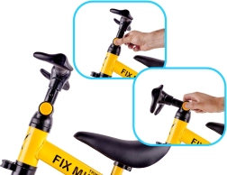 Het stuur 41–50 cm en het zadel 31–38 cm zijn snel aan te passen, zodat het kind correct zit en met vertrouwen rijdt.