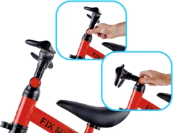 Stuur (41–50 cm) en zadel (31–38 cm) stel je in een oogwenk af voor de juiste houding en comfort in elke leerfase.