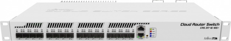 MikroTik CRS317-1G-16S+RM is een krachtige, beheerde switch geschikt voor rackmontage, met 16 SFP+-poorten voor 10GbE-connectiviteit en één 1GbE koperpoort voor beheer.