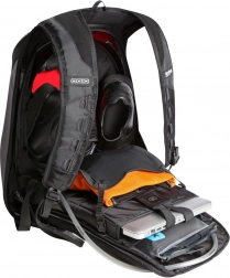 De toegepaste technologieën zorgen voor een veilige en comfortabele rit. De afneembare heupriem met fleece voering beschermt de brandstoftank tegen beschadiging. De interne indeling bevat multifunctionele vakken, een goed georganiseerd paneel met ritssluiting en een laptopvak met beschermend materiaal.
