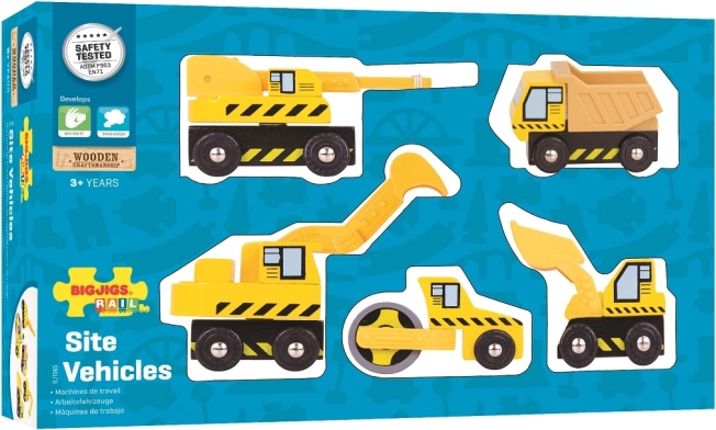 Bigjigs Rail set met bouwmachines voor houten treinbanen. 5 stuks, hout en magneten, compatibel met de meeste sets. Veilig, kwalitatief, voor kinderen vanaf 3 jaar.