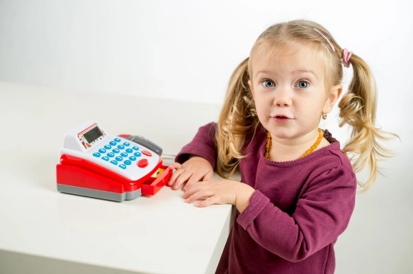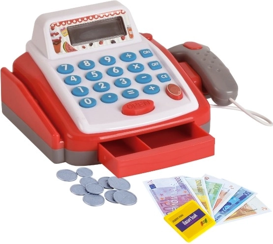 Leuke en realistische kinder-kassa voor kleine verkopers. Biedt een functionele rekenmachine met display, een openende geldlade en een barcodelezer met licht en geluid. Ideaal speelgoed voor het ontwikkelen van fantasie, rekenvaardigheid en sociale vaardigheden.