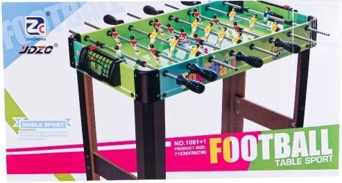 Deze tafelvoetbal is ideaal voor familieplezier en vriendschappelijke duels. Dankzij de compacte afmetingen van 71 × 36 cm plaats je hem eenvoudig op een standaard tafel, terwijl hij elementen van een grote tafel behoudt – metalen stangen met 360° rotatie, keepers, een scoreteller en soepel bewegende spelers.