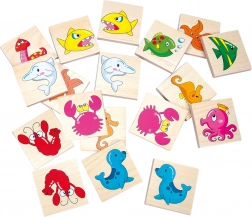 Bino Houten Memorie Waterwereld biedt kleurrijke afbeeldingen van schattige waterdieren, waardoor het spel leuk en intuïtief is. Deze memorie is praktisch verpakt in een doosje met een schuifdeksel, gemaakt van licht en stevig multiplex.