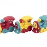 Kleine plastic locomotief met vliegwielaandrijving 8 cm voor de allerkleinsten – 3 kleuren