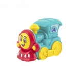 Een schattige plastic locomotief van 8 cm met vliegwielaandrijving maakt de kleinste chauffeurs blij. Biedt eenvoudige bediening, duurzame uitvoering en 3 vrolijke kleuren – het ideale speelgoed voor kinderen vanaf 18 maanden.