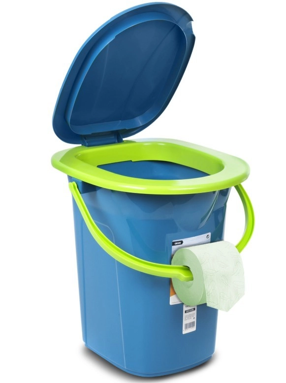 De speciale afdichtingsconstructie voorkomt effectief het ontsnappen van onaangename geuren. Het toilet is uitgerust met een transporthandgreep, die tevens dient als houder voor toiletpapier. Een speciale verdieping in de bodem vergemakkelijkt het legen van de container.