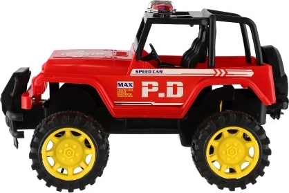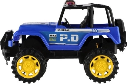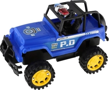 Het robuuste off-road design met hoge onderzijde en opvallende wielen geeft zekerheid in de “offroad” van de kinderkamer en in de tuin. De politielook met duidelijke opschriften ondersteunt rollenspel en prikkelt de fantasie. Dankzij het vliegwiel hoef je de auto alleen maar een duwtje te geven en hij rijdt vooruit zonder batterijen.