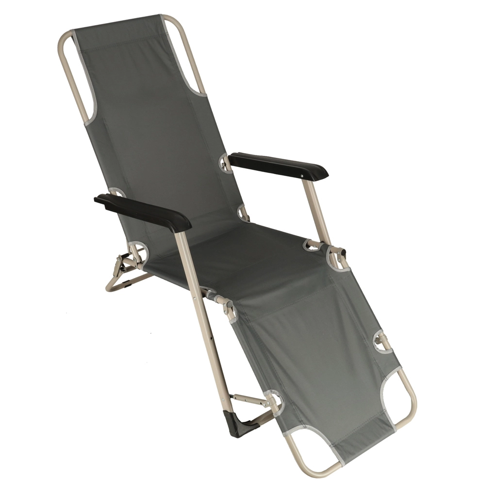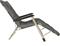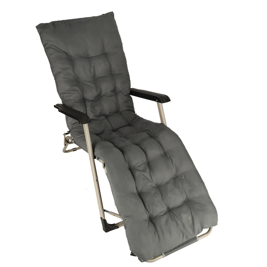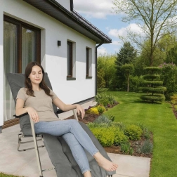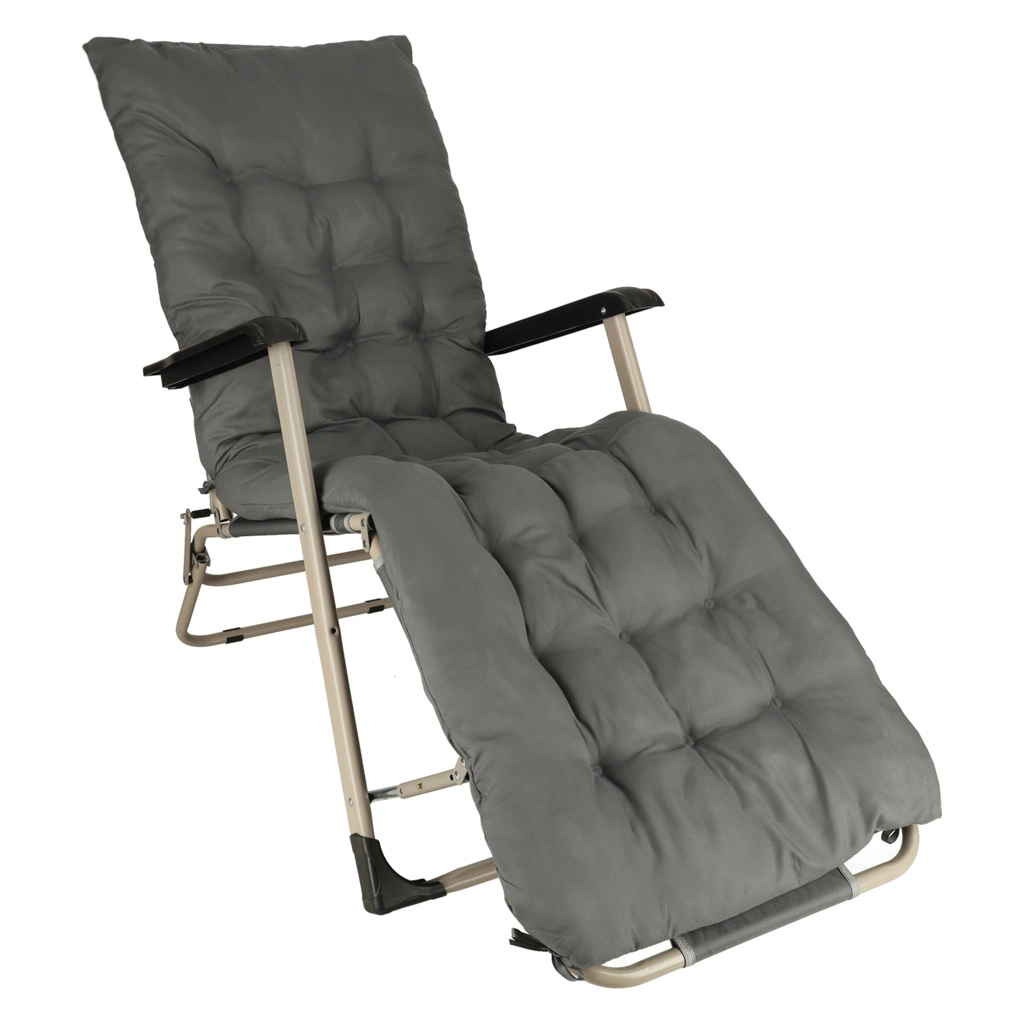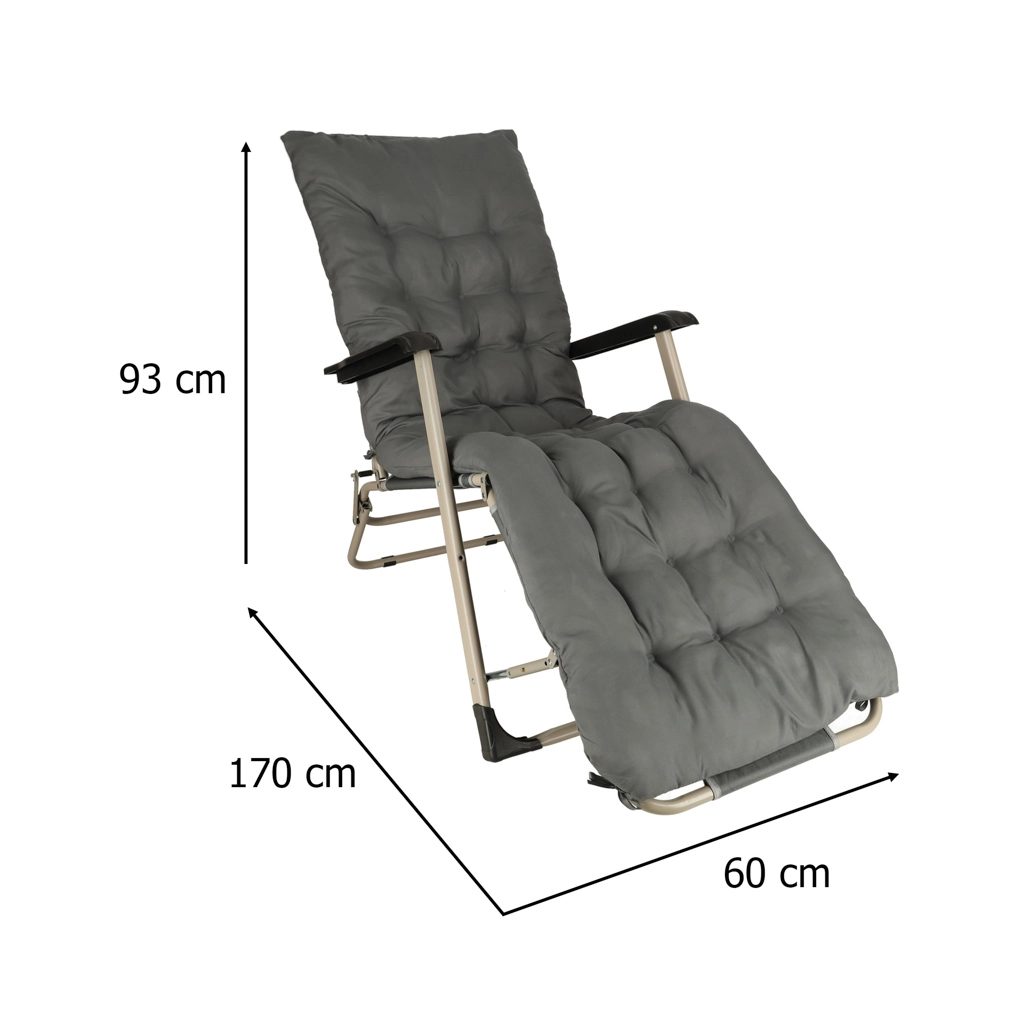 De grijze inklapbare tuinligstoel met comfortabel kussen is de ideale keuze voor ontspanning in de tuin of op het terras. De zeer duurzame constructie en het opvouwbare ontwerp zorgen voor eenvoudige handling en opslag.