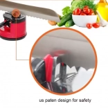 Slijper voor messen en scharen met zuignap en blokkerend hefboommechanisme rood