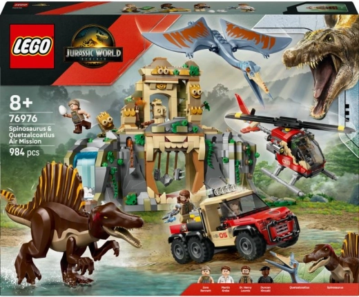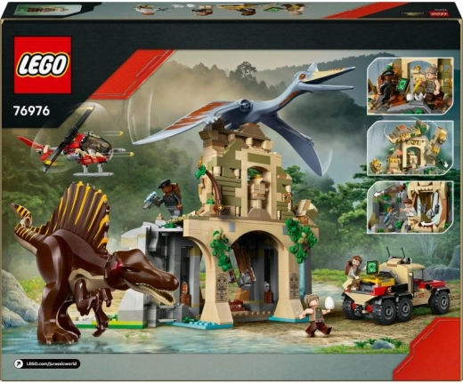 Beleef door films geïnspireerde jungle-actie: een oeroude tempel met waterval verbergt een nest met eieren, geheime doorgangen en een val die met een ketting wordt geactiveerd. De beweeglijke Spinosaurus (benen, poten, staart, kop en kaak) en majestueuze Quetzalcoatlus (vleugels en kaak) zorgen voor realistische achtervolgingen en reddingsscènes.