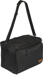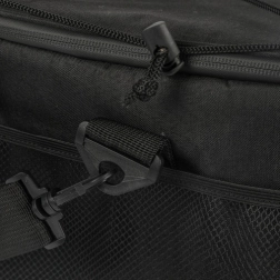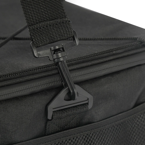 Voor het dragen is hij uitgerust met een comfortabele, verstelbare schouderriem met beschermend kussentje, wat comfort garandeert zelfs bij zwaardere belading. De tas is bovendien waterbestendig, waardoor je hem zonder zorgen op nat gras of zand kunt neerzetten.