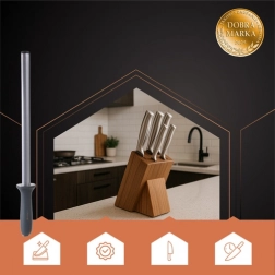 Geef je messen een precieze scherpte met het diamanten aanzetstaal van RUHHY. Het diamantoppervlak zorgt voor snel en gelijkmatig slijpen zonder het lemmet te beschadigen.