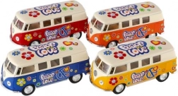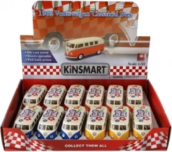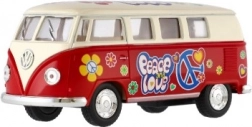 Metalen model van een Volkswagen-bus die nostalgie en plezier brengt met zijn retrodesign en opwindmechanisme. Beschikbaar in vier kleurvarianten.