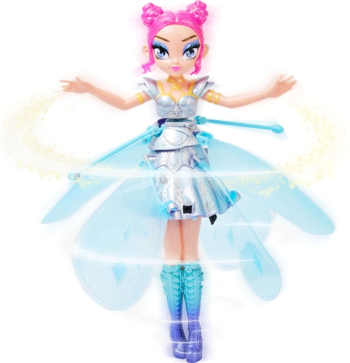 Ontdek de magische vliegende fee Hatchimals Pixies Crystal Flyers in de blauwe uitvoering Starlight Idol. De elegante fee met glinsterende vleugels zweeft boven je handen, reageert op hun beweging en dankzij USB-opladen beleef je veel interactieve fun. Ideaal cadeau voor kinderen vanaf 6 jaar met een figuurhoogte van ongeveer 17 cm.