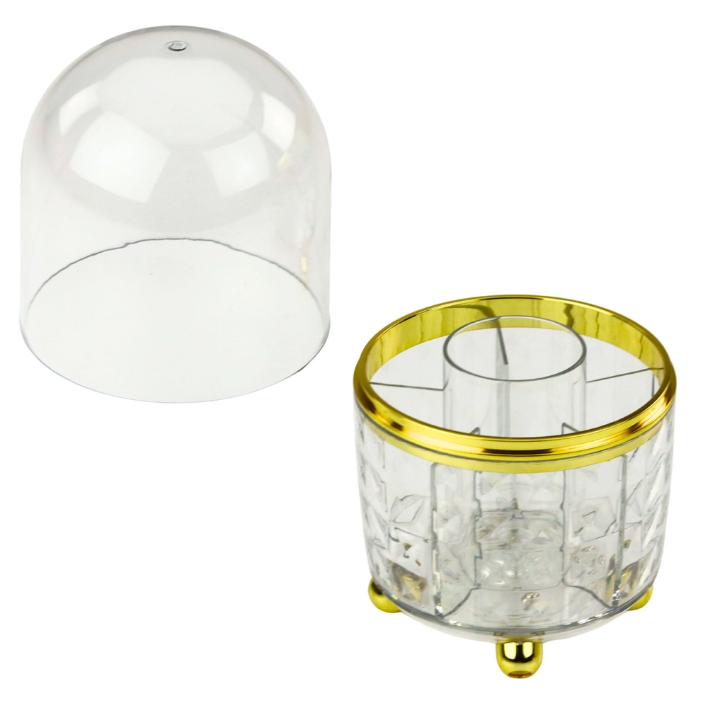 Elegante organizer met transparante kap is een stijlvolle oplossing voor elke kaptafel, bureau of badkamerplank. Hij blinkt uit door de 360° draaifunctie, waardoor je de houder snel kunt draaien om het juiste vakje te vinden. De transparante kap beschermt cosmetica en kwasten tegen stof en vervuiling.