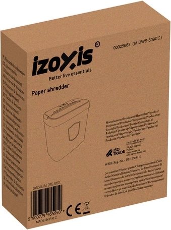 De IZOXIS P-4 vernietiger is ontworpen voor iedereen die gevoelige informatie wil beschermen volgens Europese normen. Het beveiligingsniveau P-4 zorgt ervoor dat reconstructie van documenten praktisch onmogelijk is zonder gespecialiseerde apparatuur. Hij snijdt documenten in stukjes van 4 x 40 mm, ideaal voor het vernietigen van persoonlijke en vertrouwelijke informatie.
