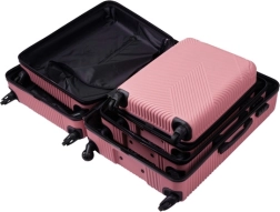 Het interieur is ontworpen voor orde zonder chaos – gescheiden compartimenten, een ritsvak en elastische kruisbanden houden alles op zijn plek tijdens de reis. Voor de veiligheid is er een cijferslot zonder sleutel. De set bevat drie maten (klein, middel, groot) die u handig in elkaar kunt schuiven voor ruimtebesparende opslag.